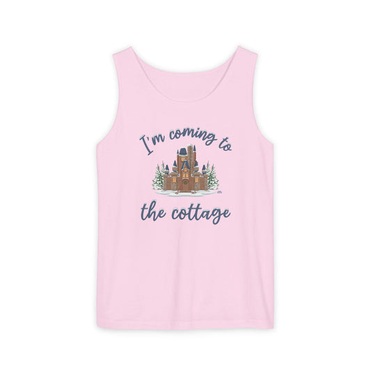 Snowy Cabin Castle, I'm Coming to the Cottage - Unisex Garment-Dyed Tank Top