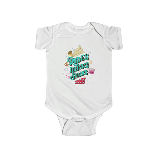 Rides, Drinks, Snacks Baby Onesie