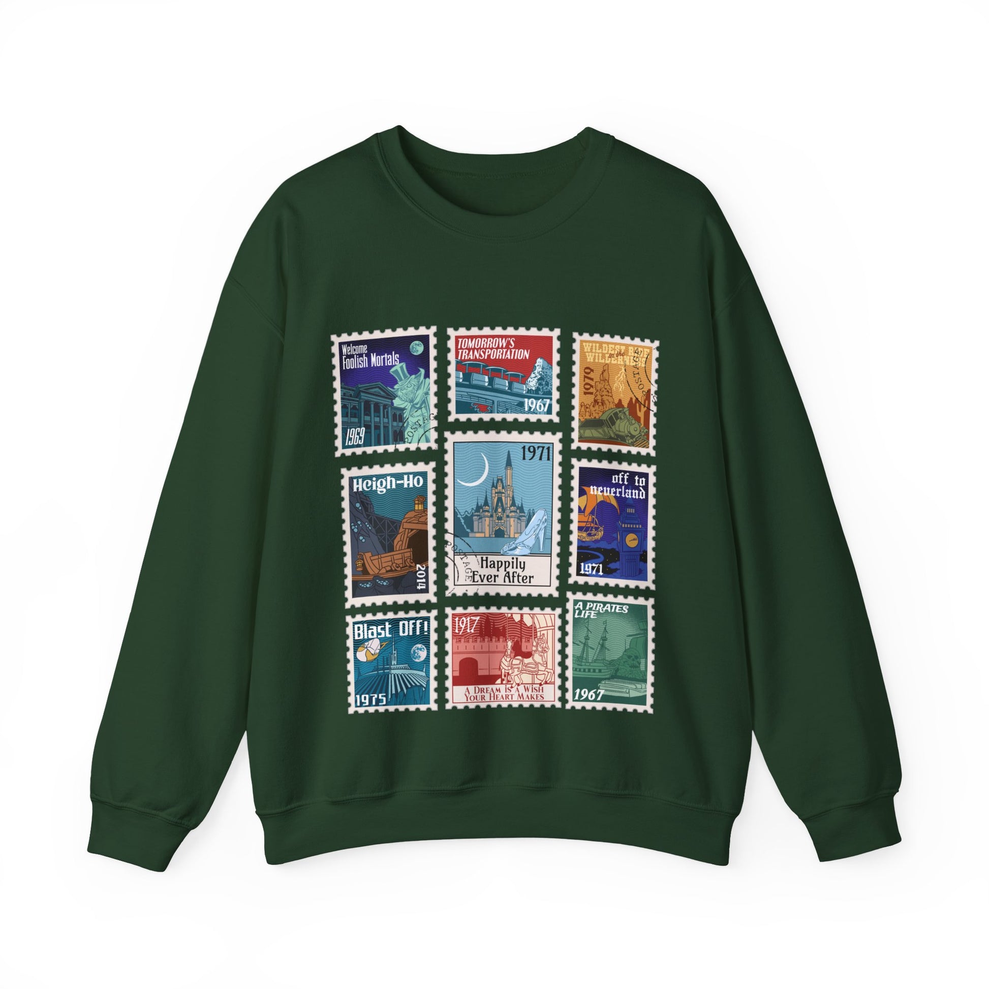 Magic Kingdom Vintage Stamps - Adult Crewneck Sweatshirt
