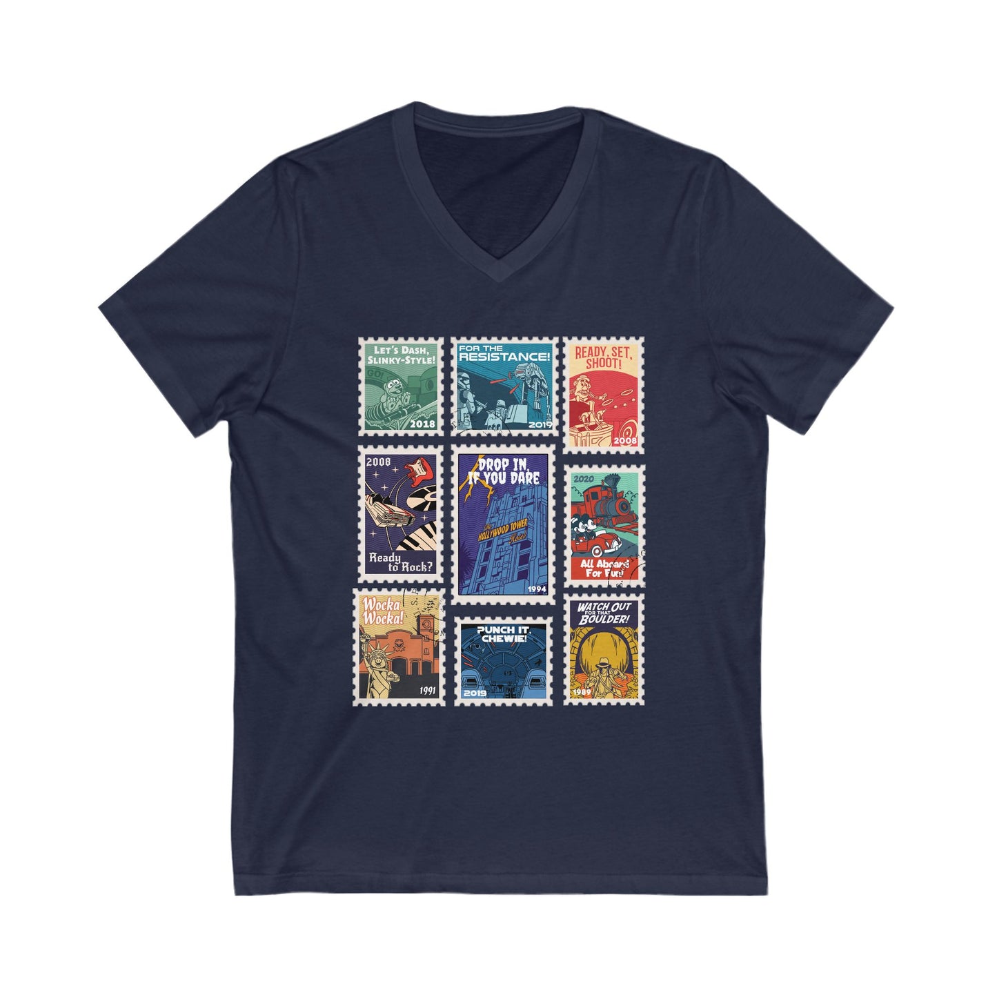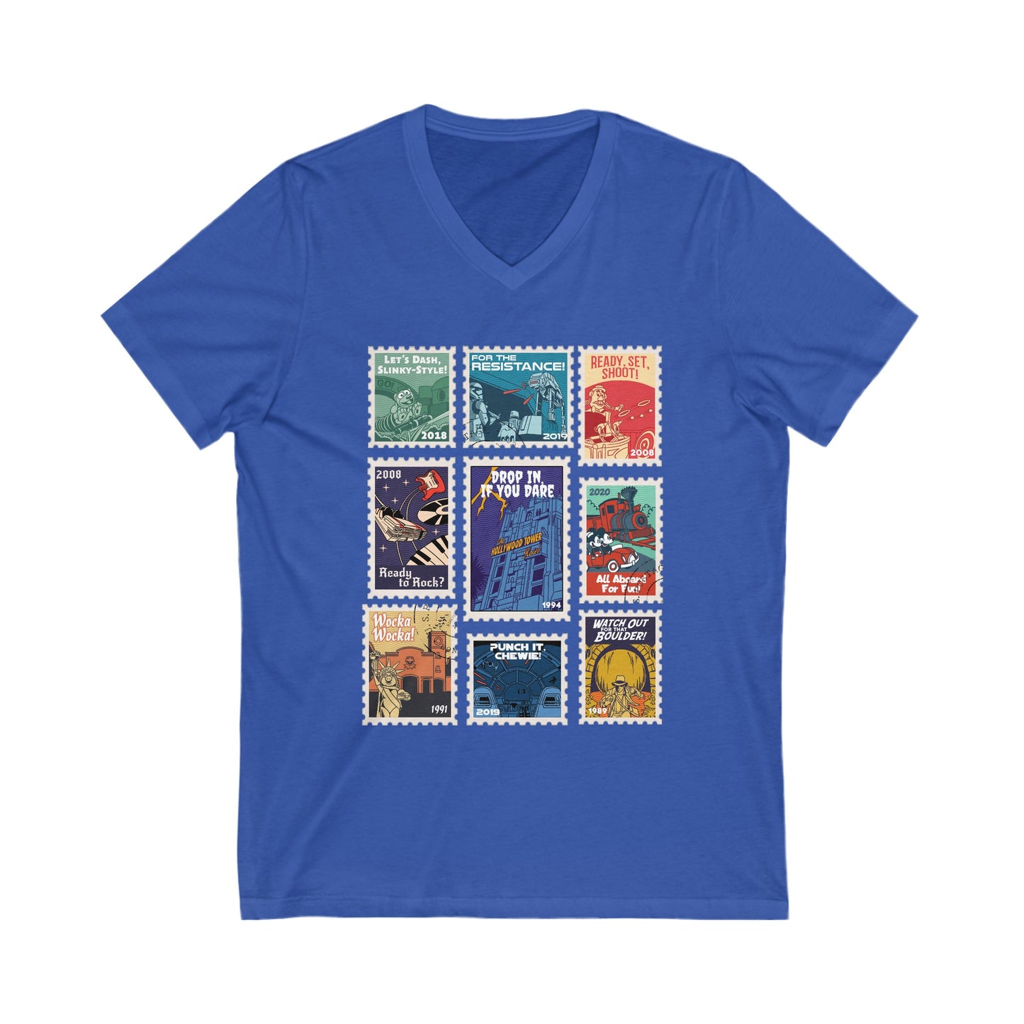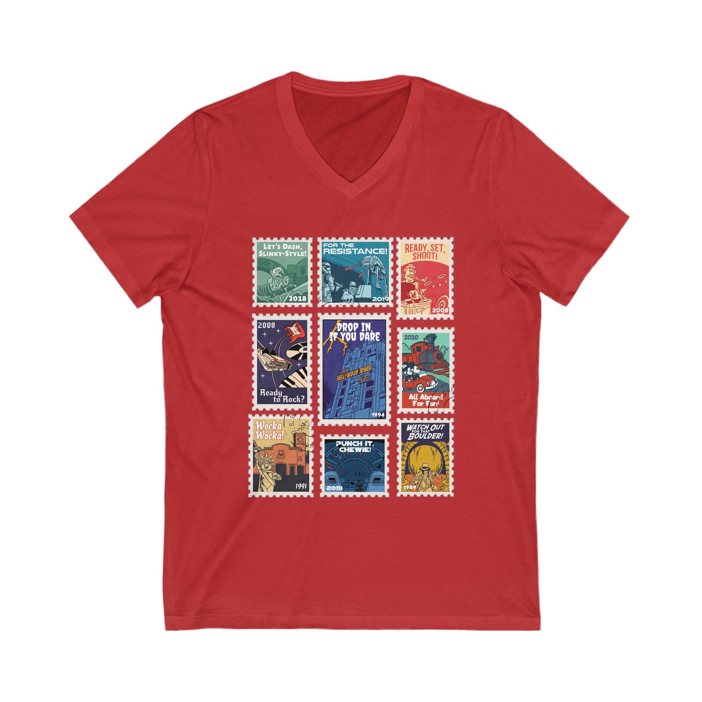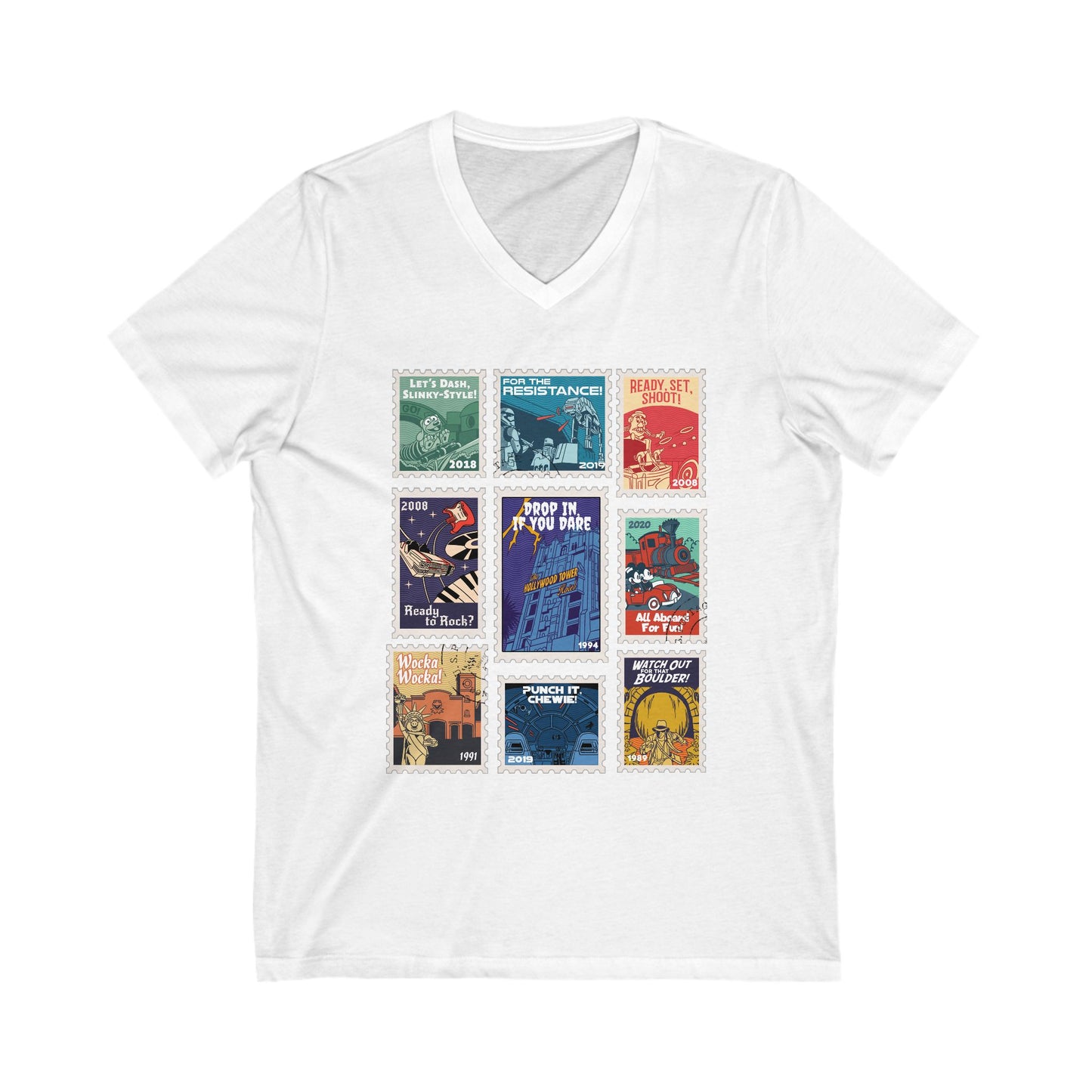 Hollywood Studios Vintage Stamps - Short Sleeve V-Neck Tee