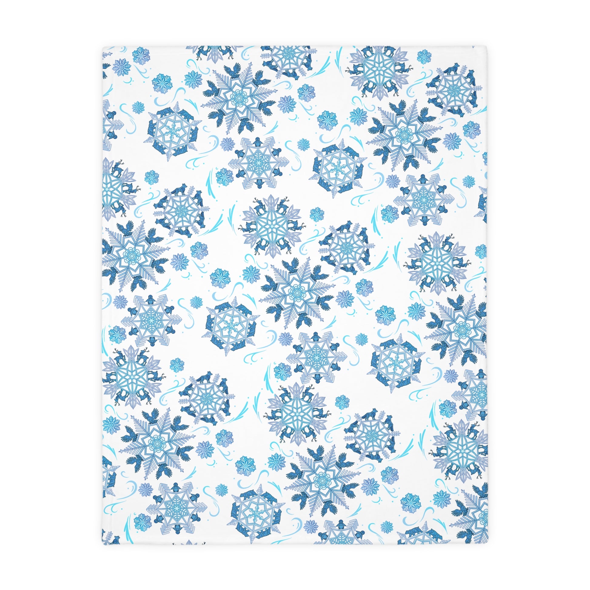 Merry Menagerie Snowflakes - Animal Kingdom Puppets - Velveteen Microfiber Blanket