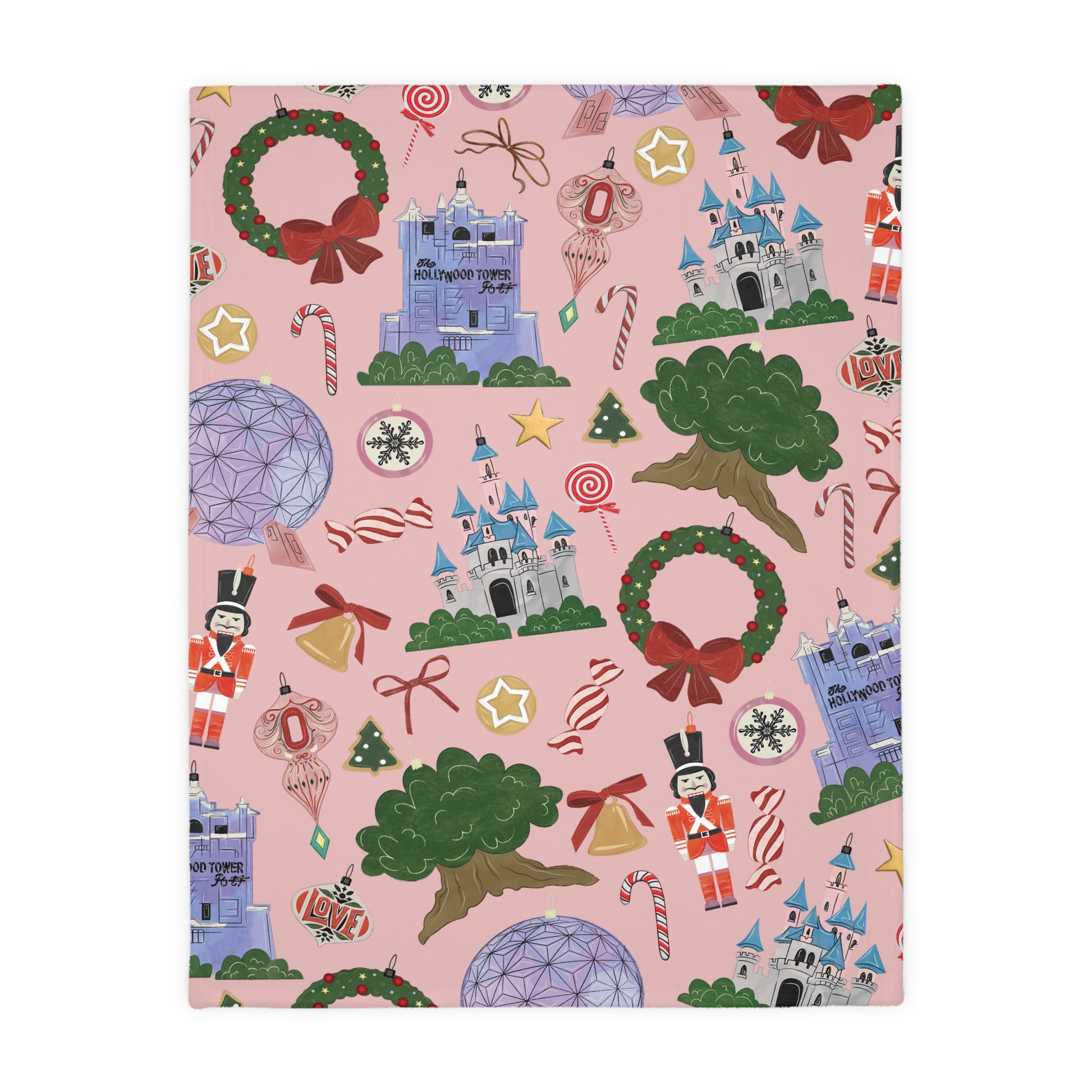 Celebrate the magic of Disney with a touch of nostalgia! This design brings together the iconic silhouettes of the four Disney parks, sprinkled with whimsical little ornaments inspired by the sights and wonders you'll find on your Disney adventures. It's a cozy, vintage-inspired way to keep the Disney spirit alive all year round.